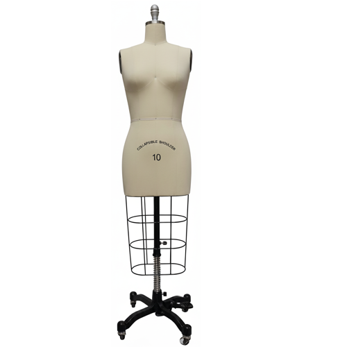 Professional female half-body dress form featuring collapsible shoulders, ideal for accurate garment fitting, tailoring, and sewing projects. Durable and adjustable for versatile use.